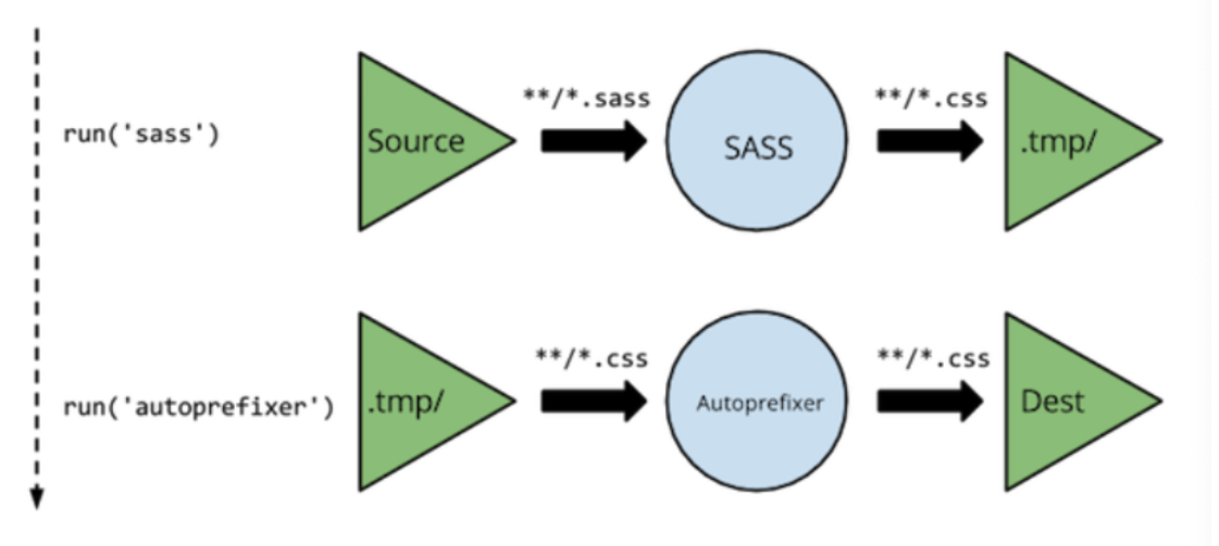 - 문법적으로 쉽고, stream 기반으로 빠르다.Grunt의 파일 단위 task 동작 방식Grunt의 파일 단위 task 동작 방식