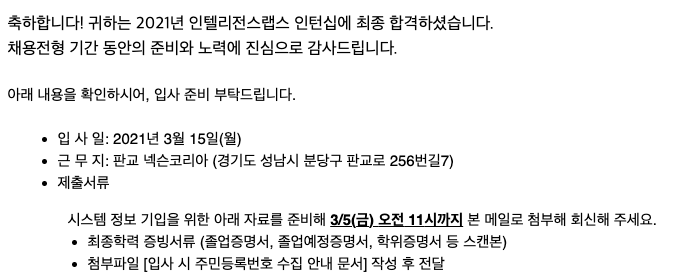 얼마전 넥슨 인텔리접스에 지원하였고 합격하였다. 인턴 기간이 6개월 후 채용되는 시스템이라 다니지는 아닐거지만 필요한 사람이 있을수도 있기에 글로서 남기고자 합니다.