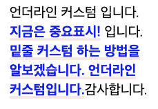 <p>언더라인 커스텀 입니다. <strong>지금은 중요표시!</strong> 입니다.<br> <strong>밑줄 커스텀 하는 방법을 알보겠습니다. 언더라인 커스텀입니다.</strong>감사합니다.</p>