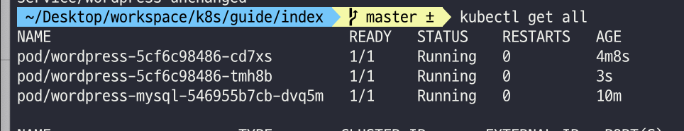 하지만 쿠버네티스로 실행 했기 때문에 내가 임의로 워드프로세스를 죽인다면 어떻게 될까??