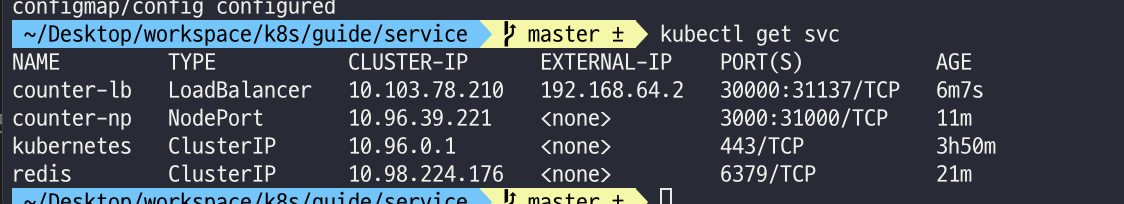 상태를 확인하면 <pending> 이라고 뜨던게 서버가 할당되어있다.