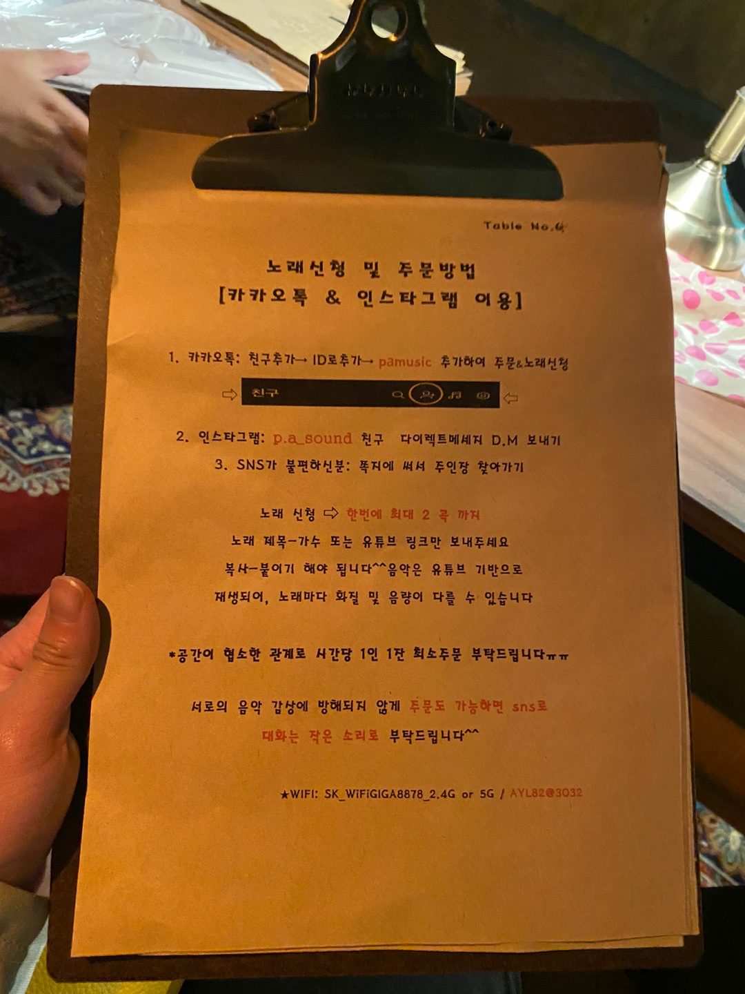 1인당 한번에 신청할 수 있는 노래는 2곡이고 손님 없으면 무제한으로 계속해서 신청해도 되는 듯..