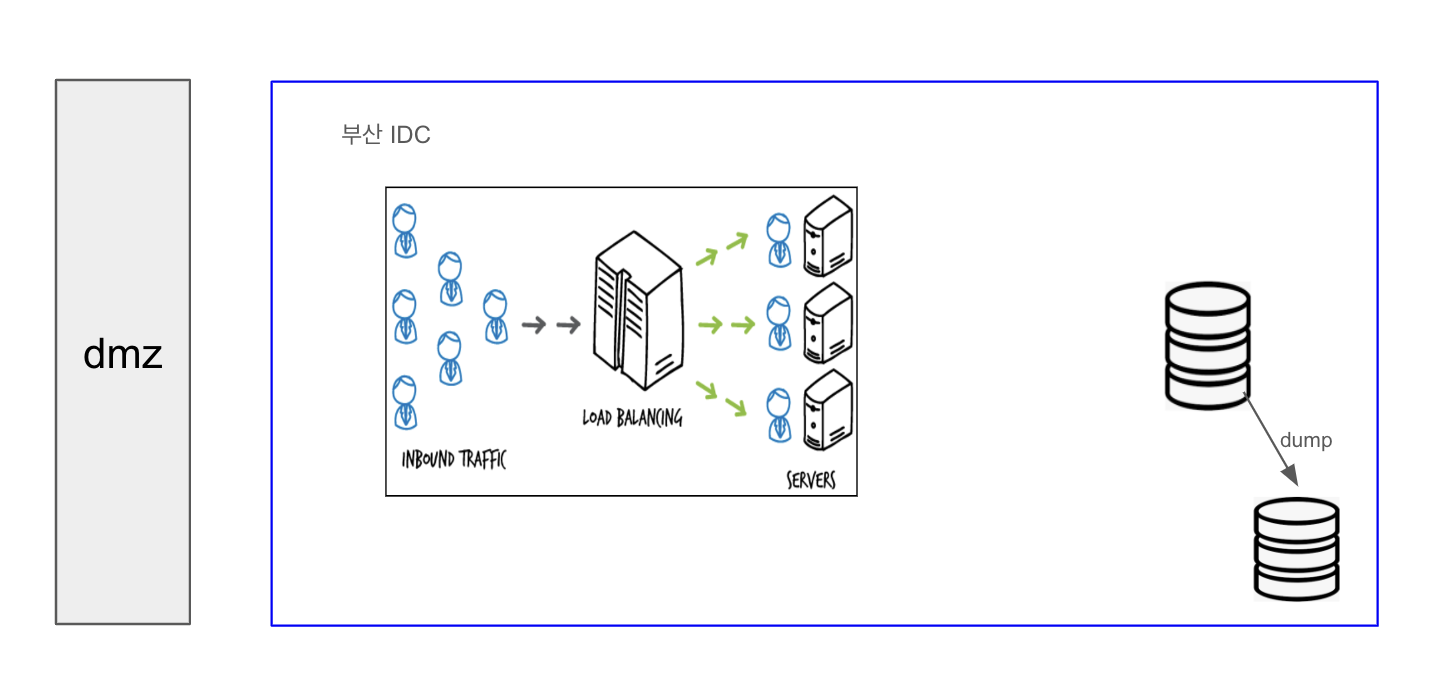 따라서 dump요청이 DB -> 부산 IDC -> DMZ -> GSLB -> VIP -> DMZ -> 제주도 IDC -> DB 이런식으로 네트워크가 이동하게된다.