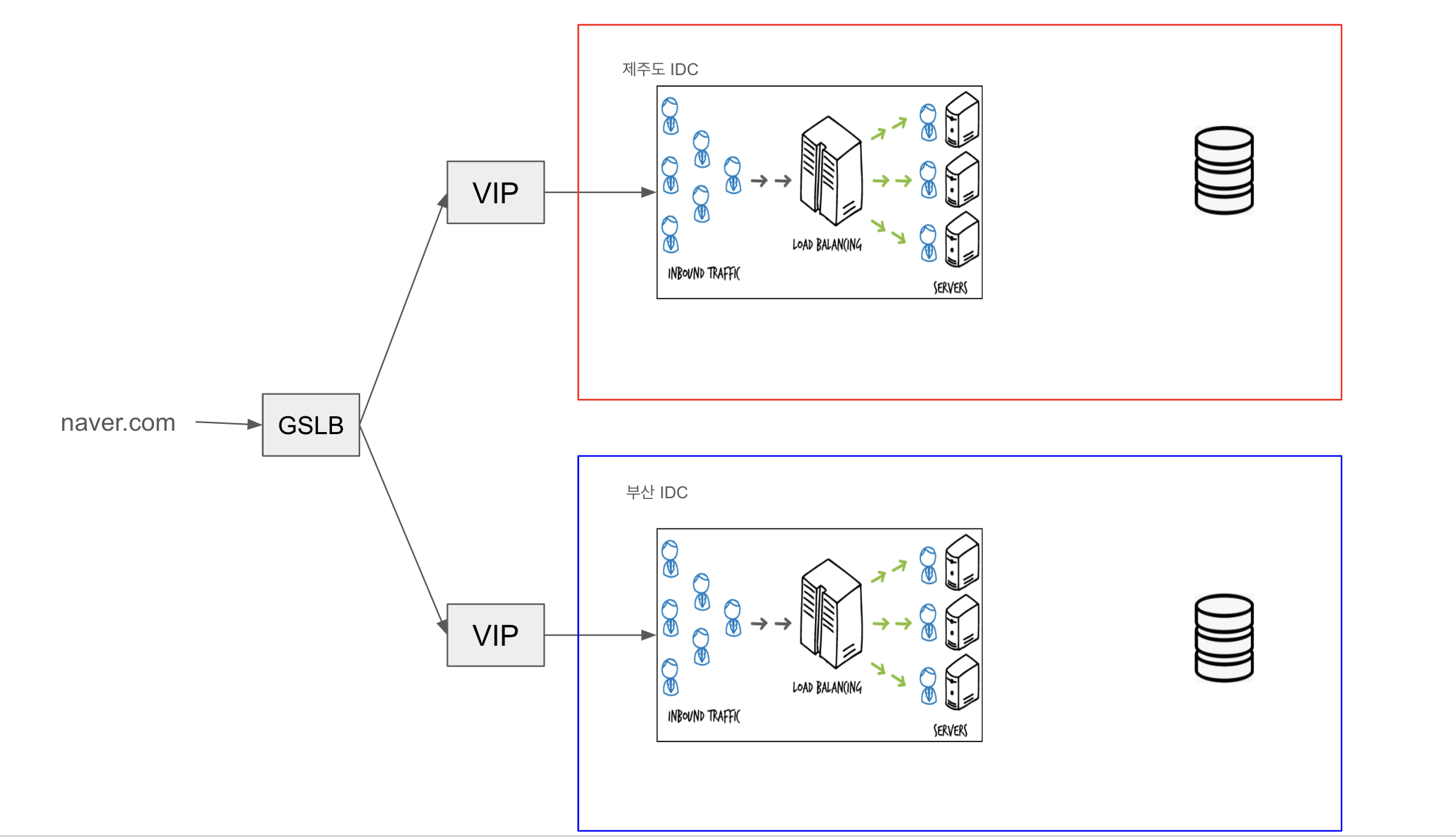좀 더 살을 보태서 제주도 IDC, 부산 IDC가 있고 다음과 같은 구성이라고 해보자.