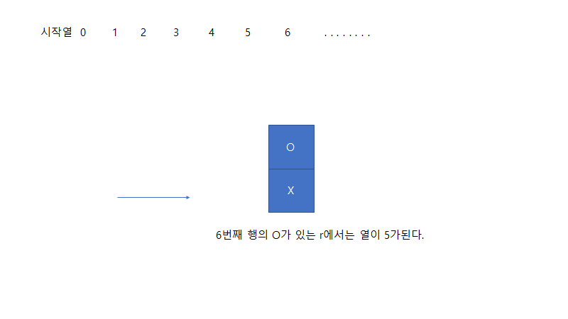 따라서 현재 쿼리가 j 번째 열이라면 'O' 를 삽입할 행위치와 열위치를 바로 찾을 수 있어야한다.