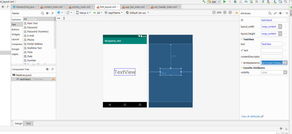화면이 뜨면 텍스트를 추가해주고 텍스트 크기를 (textAppearance)를 키웁니다.
