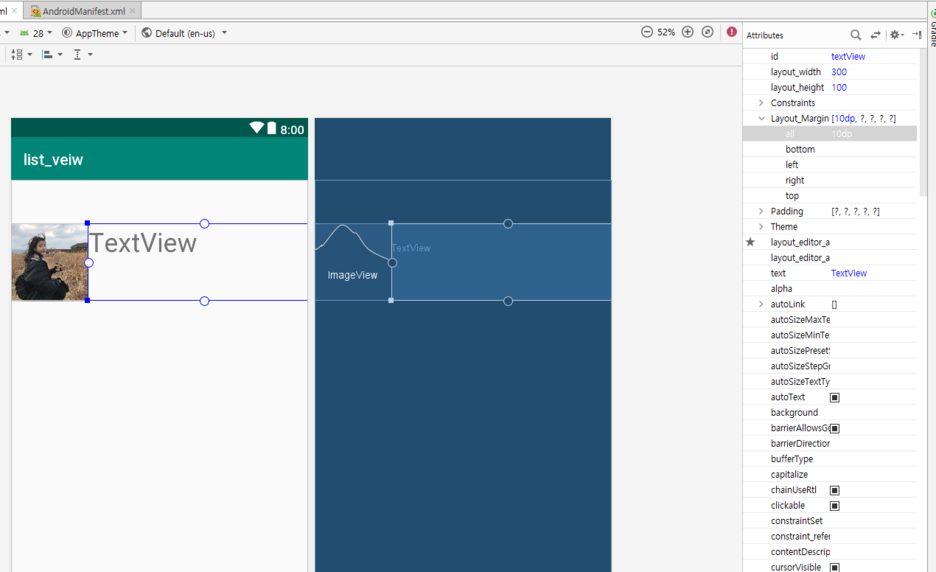 텍스트뷰도 설정합니다. 마진 10 넙이300 높이 100