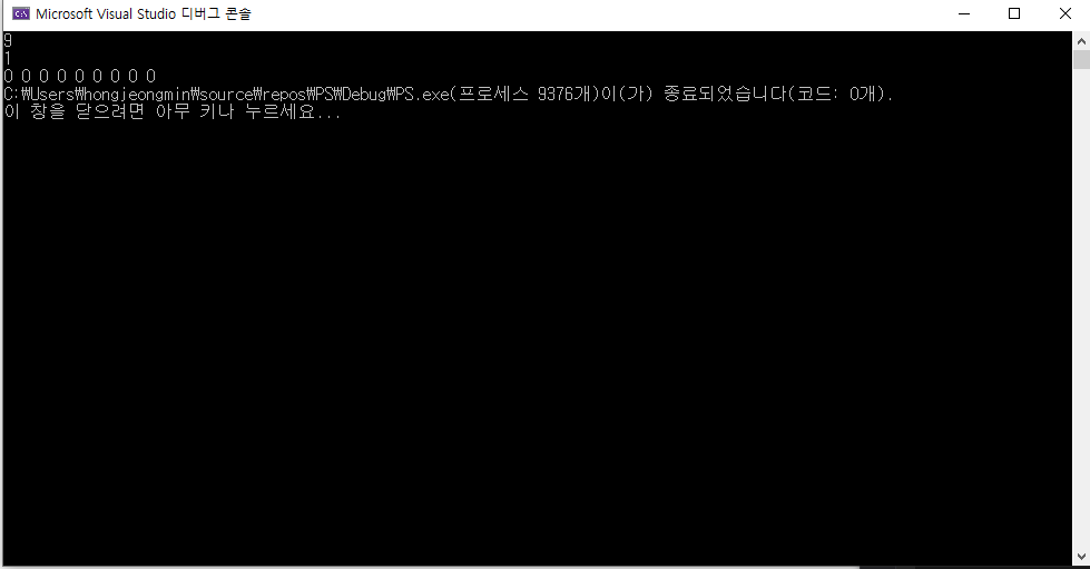 vector <int> v(9) 선언하면 0으로 초기화된 9개의 배열을 선언하는 것과 같다.